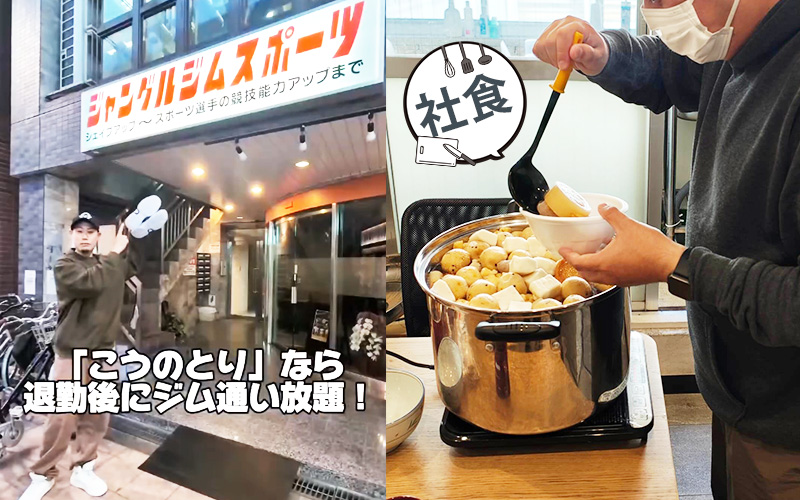 会社から徒歩10秒ほどの場所にジムがあり、社員なら無料で利用できます。仕事終わりにトレーニングをして、より充実した1日を過ごせます!